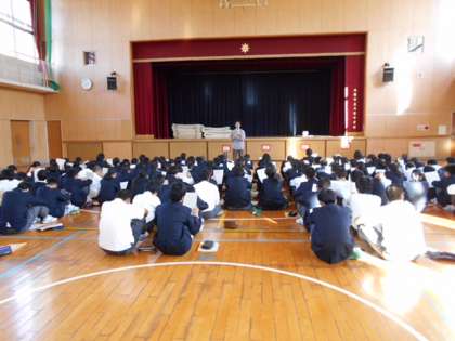 11月13日(月)6限、体育館で明日から始まる職場体験の事前指導が行われました。前日の準備、当日の動き、全般を通じての注意等が進路指導主事の林先生からありました。その後、事業所ごとに分かれて、最終確認が行われました。