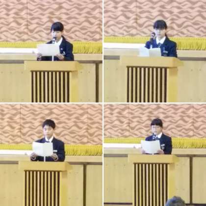 さすが各クラスの代表者、発表態度も素晴らしく、主張の内容もそれぞれの思いがとても伝わる素敵なものばかりでした。また、主張を聞く側の生徒も、とても真剣な様子で仲間の主張を聞いていました。