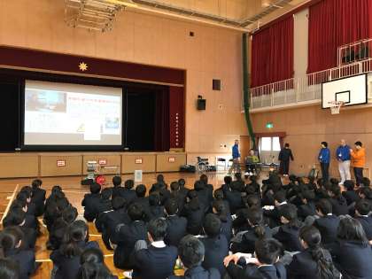平成30年2月16日(金)、5時間目に鈴東(すずひがし)裕己さんをお招きし、福祉講話をしていただきました。