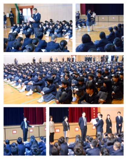 春は別れと出会いの季節ですねという言葉から、校長先生が、離任した教職員と着任した教職員を紹介します。離任の紹介はどこか寂しく、着任の紹介は「どんな先生だろう?」という興味が津々です。素敵な出会いであることが信じられます。