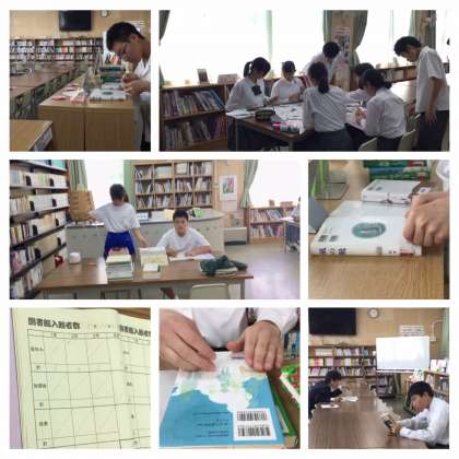 5月15日(火)の図書館の様子です。天気が良いので、グランドでボール遊びをしてエネルギーを発散しているグループも多い中、図書委員さんがしっかり仕事をしてくれていました。受付業務・蔵書整理(バーコード化のためのシール張り)等々、こうした努力のお陰で、図書館が整備されていることを知っていてほしいと思います。もちろん、図書委員だけでなく読書している生徒の姿もありました。明後日(17日)から、1・2年生は中間テストです。明日は、放課後の開館もあります。