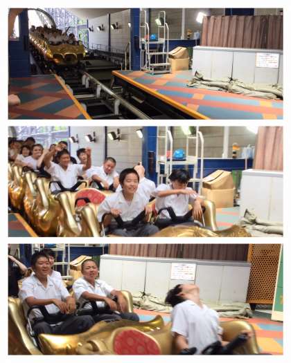 絶叫系マシン FUJIYAMA 今から乗るグループ、その前に、戻って来ました。興奮している?放心状態?楽しそう?もう一回乗りたい?もう一生嫌?様々な表情です。