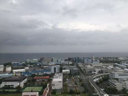 横浜テクノタワーホテルから眺めた様子です。海がすぐに見えます。