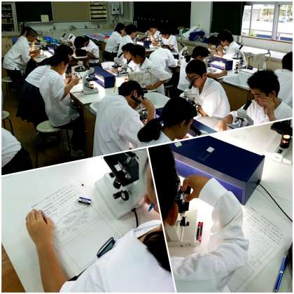 今回は観察実験として、植物の維管束と気孔を観察しました。みんな真剣に観察しながらその様子をスケッチしています。特徴をしっかり捉え、表現する力を養ってほしいと思います。