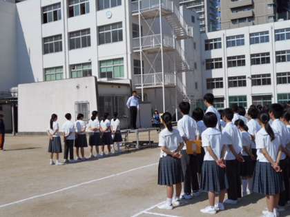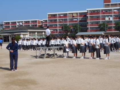月曜の朝、いつも時間を守って全校集会が始まることは、みんなが意識していないとできないことです。八阪中学校の胸を張れることの1つです。