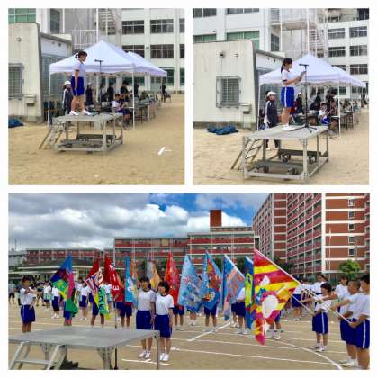 生徒会代表の開会宣言・・・選手宣誓・・・競技上の注意・・・