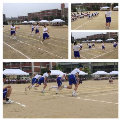 50m走から競技の始まりです。走るのが得意な人。苦手な人。さまざまだと思います。だけど、得意苦手に関係なく、一生懸命に走る姿には感動を覚えます。力走。また力走。真っ先にゴールテープを切ることを目指し、頑張れ!