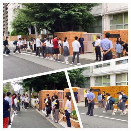平成30年6月12日(火)、毎月第2火曜日は「PTAあいさつ運動」の日です。朝から雨が降ったりやんだりの梅雨空ですが、登校時間には何とか曇り空で、あいさつ運動に取り組むことができました。生徒会や先生方が毎日「あいさつ運動」をしていただいているお蔭で、生徒たちが笑顔で「おはようございます!」と気持ちよくあいさつをして登校する姿に、うれしく思いました。(PTA会長談)今後とも、PTA活動にご協力よろしくお願いします。