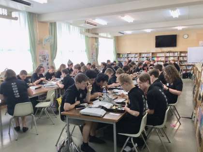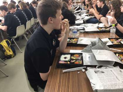お昼は図書室で、日本のお弁当を食べていただきました。上手にお箸も使いこなして、おいしそうに食べていました。午後からの演奏会に向けての準備があり、ゆっくりしていただける時間はなかったです。