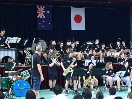 引き続きポジションを変えて、ジャズの演奏です。さすがにリズムにのって、とても楽しそうです。自然に身体もリズムに乗っていく感覚。会場全体が一つになる素敵な空間です。オーストラリア国旗と日本国旗が印象的でした。