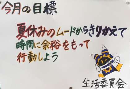 生活委員会からは、「夏休みのムードからきりかえて時間に余裕をもって行動しよう」
