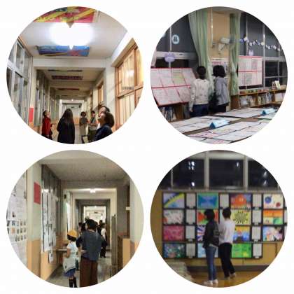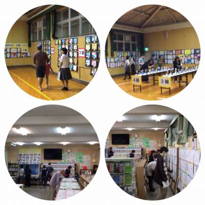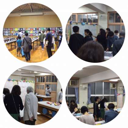PTA役員・実行委員さんのご協力により、保護者や地域の方々にゆっくり展示見学をしていただけるように、午後6時30分〜午後8時まで夜間の開放をさせていただきました。