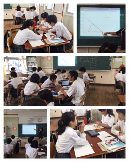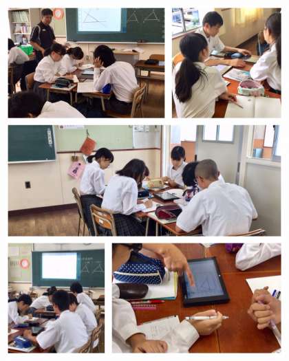 平成30年10月16日(火)2限目、2年2組でICT(タブレット・プロジェクター)を活用した数学の研究授業を行いました。