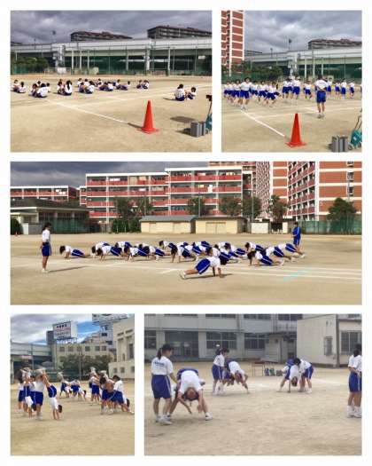 大阪市教育振興基本計画に、「健康や体力を保持増進する力の育成」が掲げられています。本校の保健体育科では、授業の初めに「体力つくり運動」を取り入れています。腕立て伏せ・腹筋・スクワット・倒立・倒立ブリッジなどバランスのとれた身体作りを考えたトレーニングを実践しています。1年生の2学期になると着実にその成果が現れているようです。コツコツ取り組むことで、身体は必ず変化します。がんばりましょう!