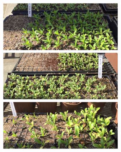 本日移植したのは、ストック(143苗)・キンセンカ(64苗)・なでしこ(90苗)・クリサンセマム(92苗)、合計で389ポットになりました。金魚草は、もう少し成長してから植え替えます。