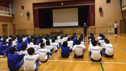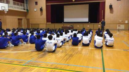 防災訓練終了後、体育館に集合し、福島消防署ならびに福島区役所の方から講評を聞かせていただきました。