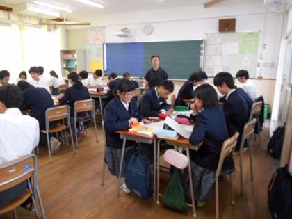 八阪中学校では、授業力の向上をめざして校内研究授業に取り組んでいます。今日は、4限に、3年2組で理科の研究授業をおこないました。