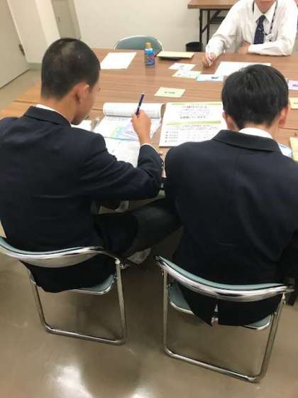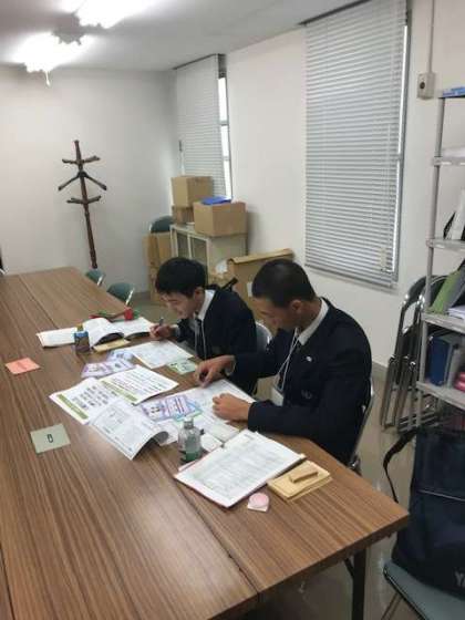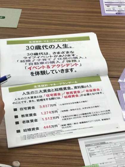研修室内においてマネーゲーム「30歳代の人生」を行なっています。