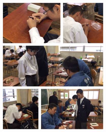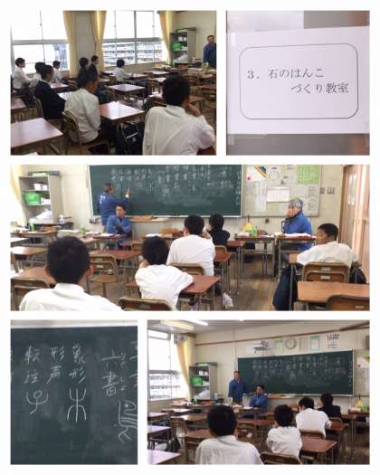 はんこづくりを体験しました。真っ直ぐに太く削ることが難しく、職人さんの技に驚いていました。できあがった後、最後にできたてのはんこを押した格好いい色紙をもらい、生徒たちは大喜びです。