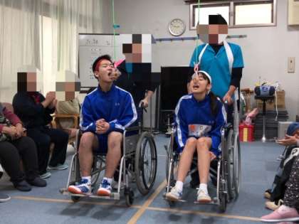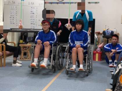 2日目は今週から続いている室内運動会の手伝いをしていました。5人が赤白に分かれ、楽しそうにしていました。競技は「パン食い競争」。最後は先生も参戦することになりました。その後、さらに5人中4人が参加し、大盛り上がりでした。