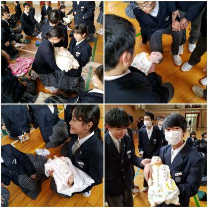 保健委員のみんなも司会進行や性に関するクイズ、赤ちゃん抱っこ体験のお手伝いなど、事前に準備をして頑張ってくれていました。赤ちゃん抱っこ体験では、小さな兄弟や親戚がいる子たちは躊躇することなく首のすわらない赤ちゃん人形を抱きかかえていました。