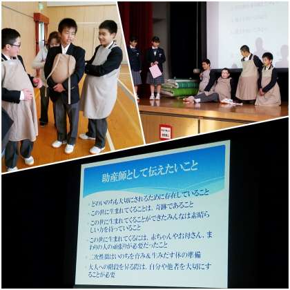 2019年1月11日(金)、1年生を対象にした性教育授業が実施されました。大阪府助産師会より講師の先生をお招きして、「命の誕生」をテーマに第二次性徴に伴う心身の変化についてどう向き合っていくのか、命を授ける者・授かる者としてどのような心構えで生活していくべきか、「妊娠・出産」の大変さと素晴らしさなどについて、自身の体験も含めたたくさんの貴重な資料をもとにお話しいただきました。