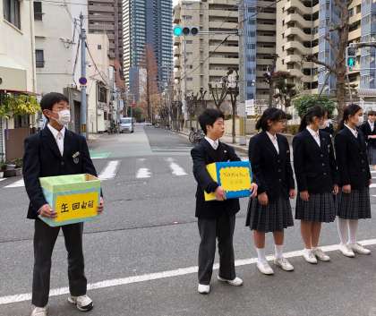 生徒会役員は、毎朝、正門前に立ち「あいさつ運動」をしながら、「空き缶の回収」「ペットボトルキャップの回収」に取り組んでいます。これから本格的な寒さがやってきますが、元気に頑張っています。みなさん、ご協力よろしくお願いします。
