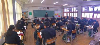 まさしく「50分間集中した授業」が展開されていました。次回は、班ごとに発表テストを実施するそうです。