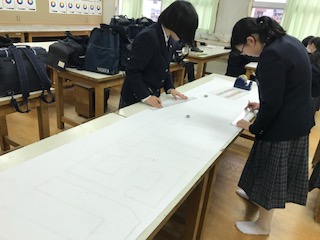 各クラスから選ばれたデザインを元に、美術部員と相談し、横断幕のデザインの最終案が決定しました。