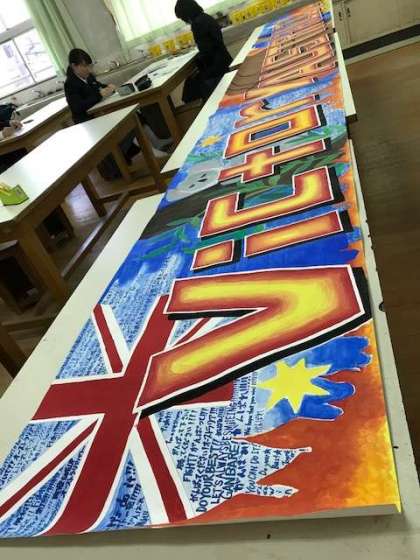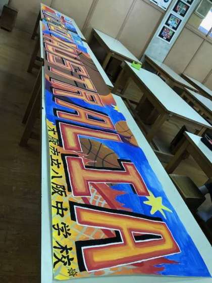 2年生は、明日、車イスバスケットボールの観戦です。そのために制作した横断幕もついに出来上がりました!協力してくれたみなさんありがとうございました。