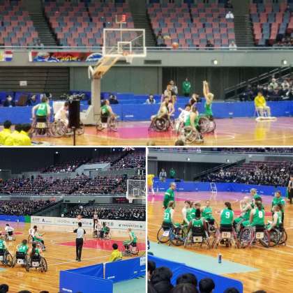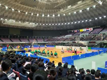 オーストラリア代表vs日本代表の試合が始まりました。選手同士が車イスをぶつけ合いながらとても激しい試合です。