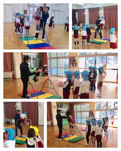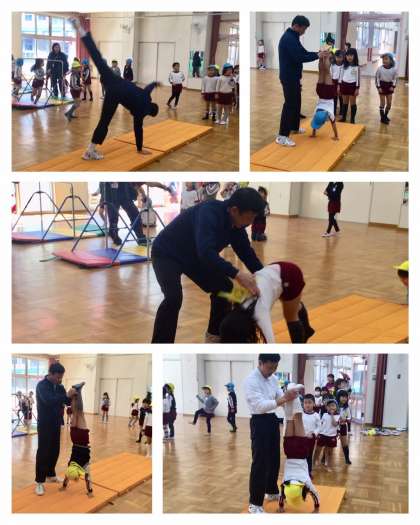 校長先生から、技の最後はポーズを決めてくださいね!とのアドバイスで出前授業を終えました。元気な園児たち、中学生になるまでにいっぱい学習してください。