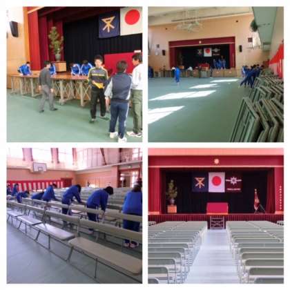 今日は、新2年生の生徒たちが中心となって校内の清掃活動・式場の準備に取り組みました。先輩となる喜びを感じながら、一生懸命にそれぞれの役割を果たしていました。