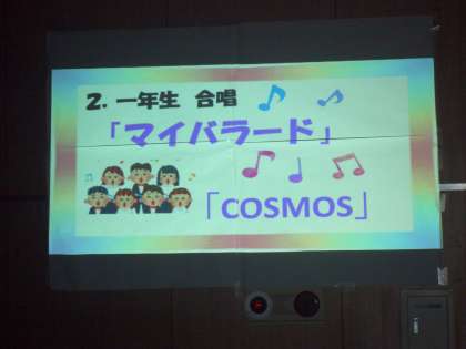 「マイバラード」「COSМOS」の2曲を歌いました。男女ともしっかり声が出ていて、オープニングとして最高の合唱となりました。
