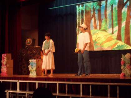 昨年の続編です。さすが3年生声も通り、長台詞もしっかり覚えて正統派の劇を見せてくれました。ステンドグラスも見ごたえありました。