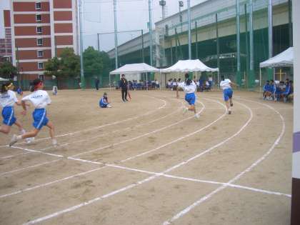 3 100m走 雨が完全に止みました。みんな全力で走っています。気持ち良いです。