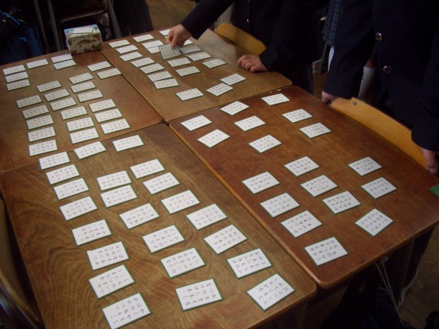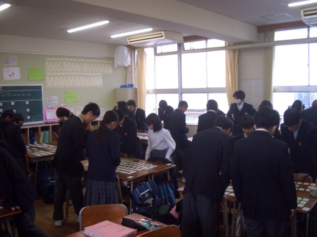 1年生英語の授業は、リスニングの小テストです。1年生国語は、百人一首の練習中です。