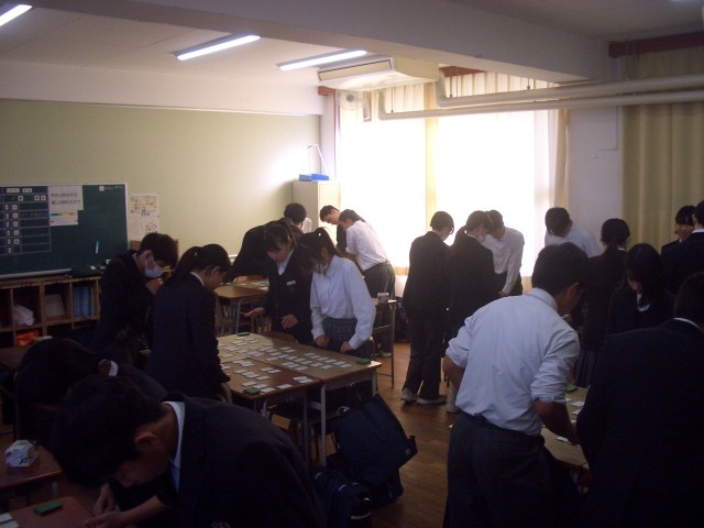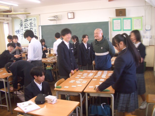 16日(金)5限目、2年生は百人一首の練習をしています。どのクラスも盛り上がっています。