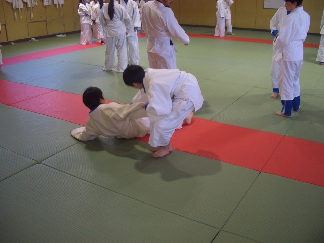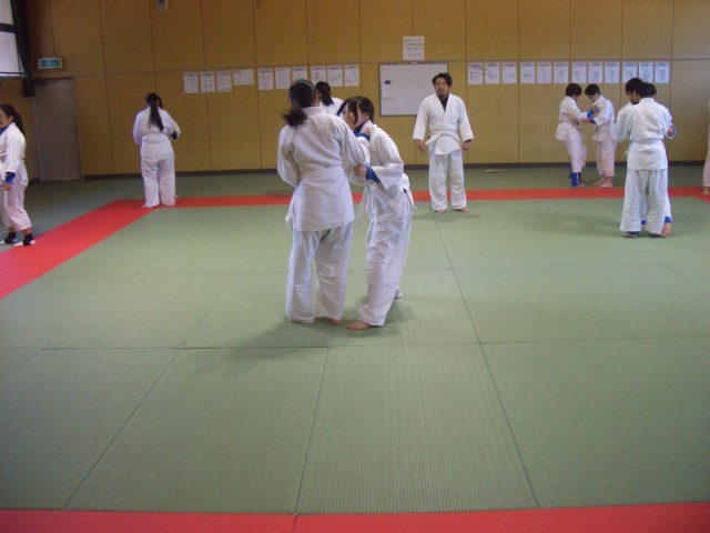 2年生の保健体育の授業は、格技室で柔道を行っています。安全を第一に怪我のないよう複数の先生で見ています。