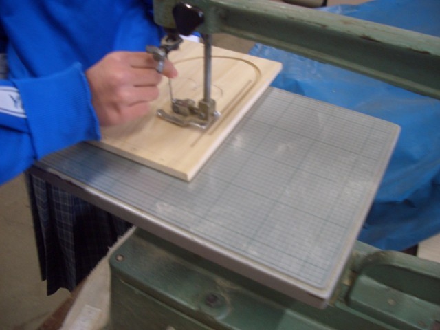 1年生技術はブックスタンドの作成、糸のこも上手に使っています。