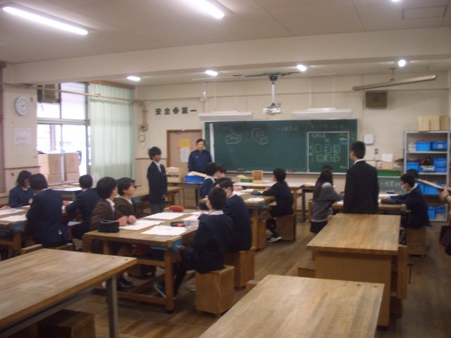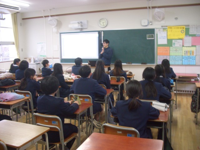 写真は、英語・国語・技術・保健体育の授業と最後の集合の様子です。