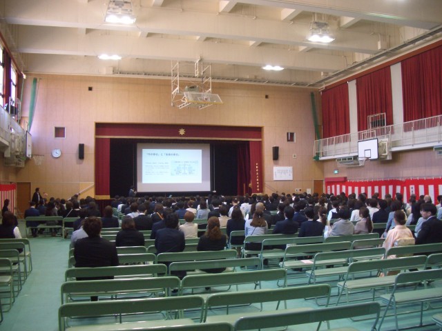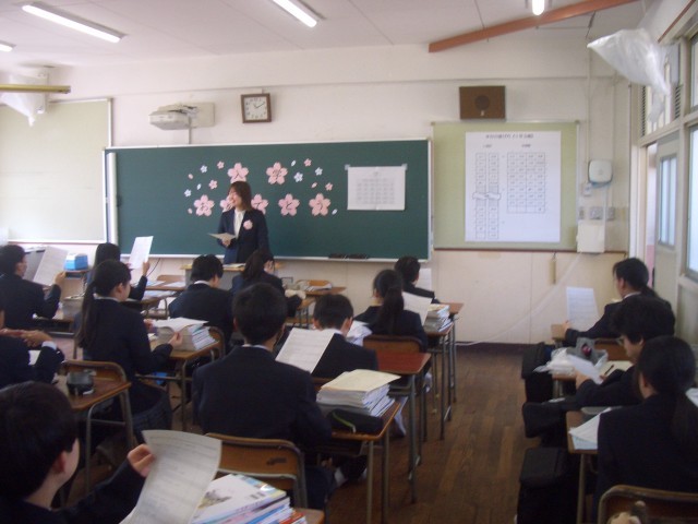 写真は式後の最初の学級活動の様子、1組→5組です。最後は一泊移住保護者説明会の様子です。