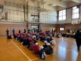 女子バスケットボール部と男子バスケットボール部の体験の様子です。
