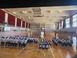 初めての体育館での練習で学級代表が指示を出し合唱の隊形に整列をしました。 その後...
