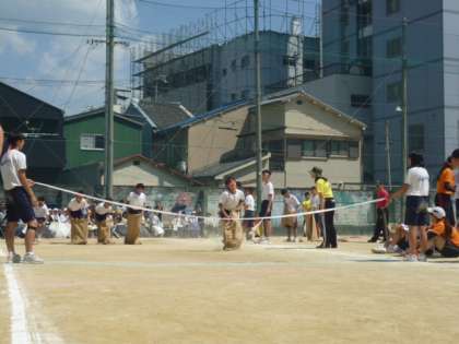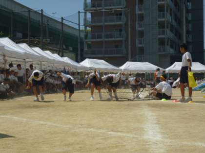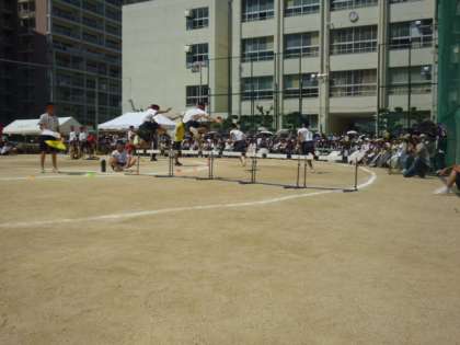 ネットをくぐり、ハードルを越え、麻袋をはいてゴールへ。