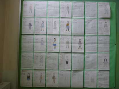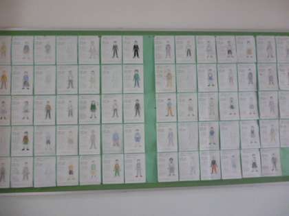 1年の教室に行く階段に展示してあるので、期末懇談でお越しの際にご覧ください。