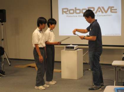 また、Line Following部門は、コースを進むプログラムとピンポン玉を入れる方法の2つを同時にこなすため難易度が上がります。結果、主催のダイセン電子工業の方に力を借りることになりましたが、難しいミッションに一生懸命取り組む姿からチャレンジャー賞をいただきました。