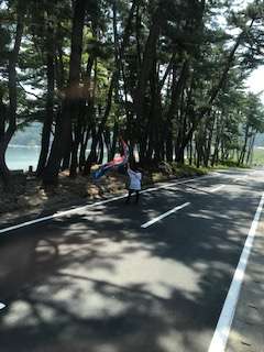 女将さんが大漁旗で見送ってくれる中、宝来館を後にし次のプログラムに向かいます。