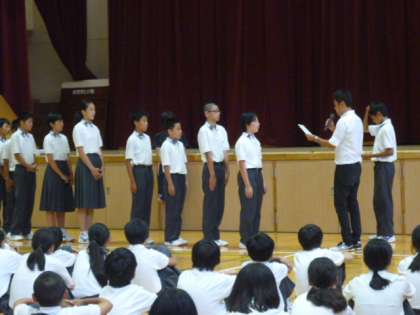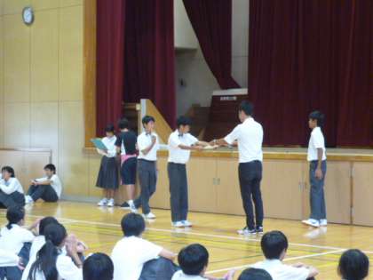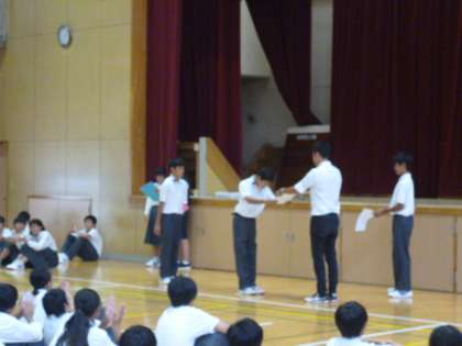 昨日1年生の水泳大会では閉会式ができなかったので、6時間目に行いました。