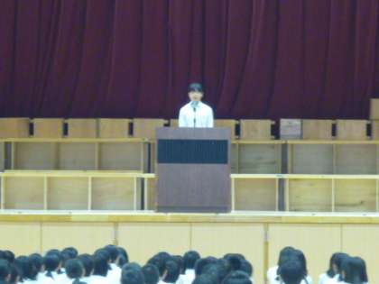 2人の生徒が英語で発表しました。